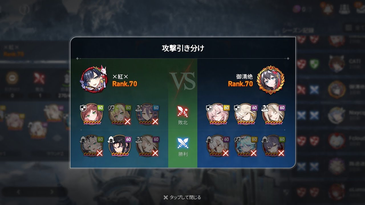 デスティーナより先にアリアが動いちゃったの厳しかった。デスティーナの潜伏なくなった後、反撃くらうとまずいなとは思ったけど、S3は温存してしまってそこに見事に反撃されてしまった。そのままターンこないまま削りきられちゃうとはおもわなんだ。デスティーナ倒されたのもあって魂力もギリギリ溜まらず。。。あと少しだったのに🥺